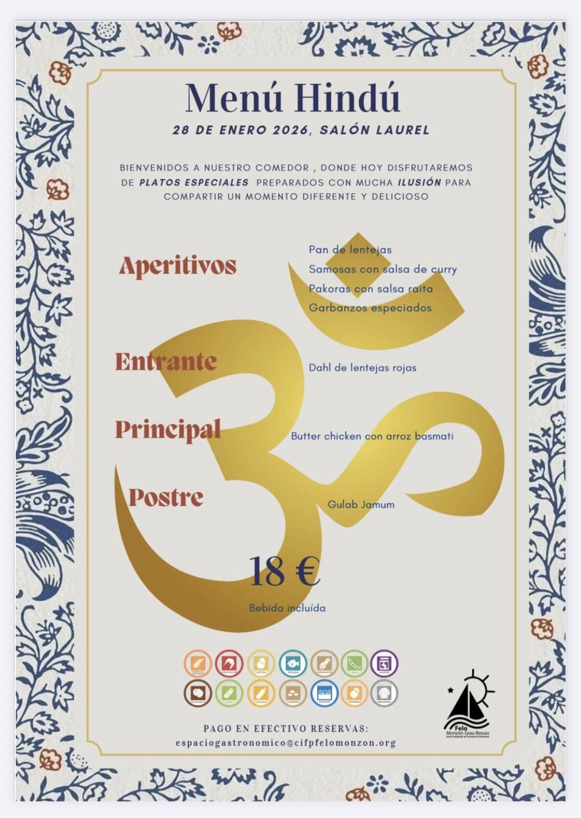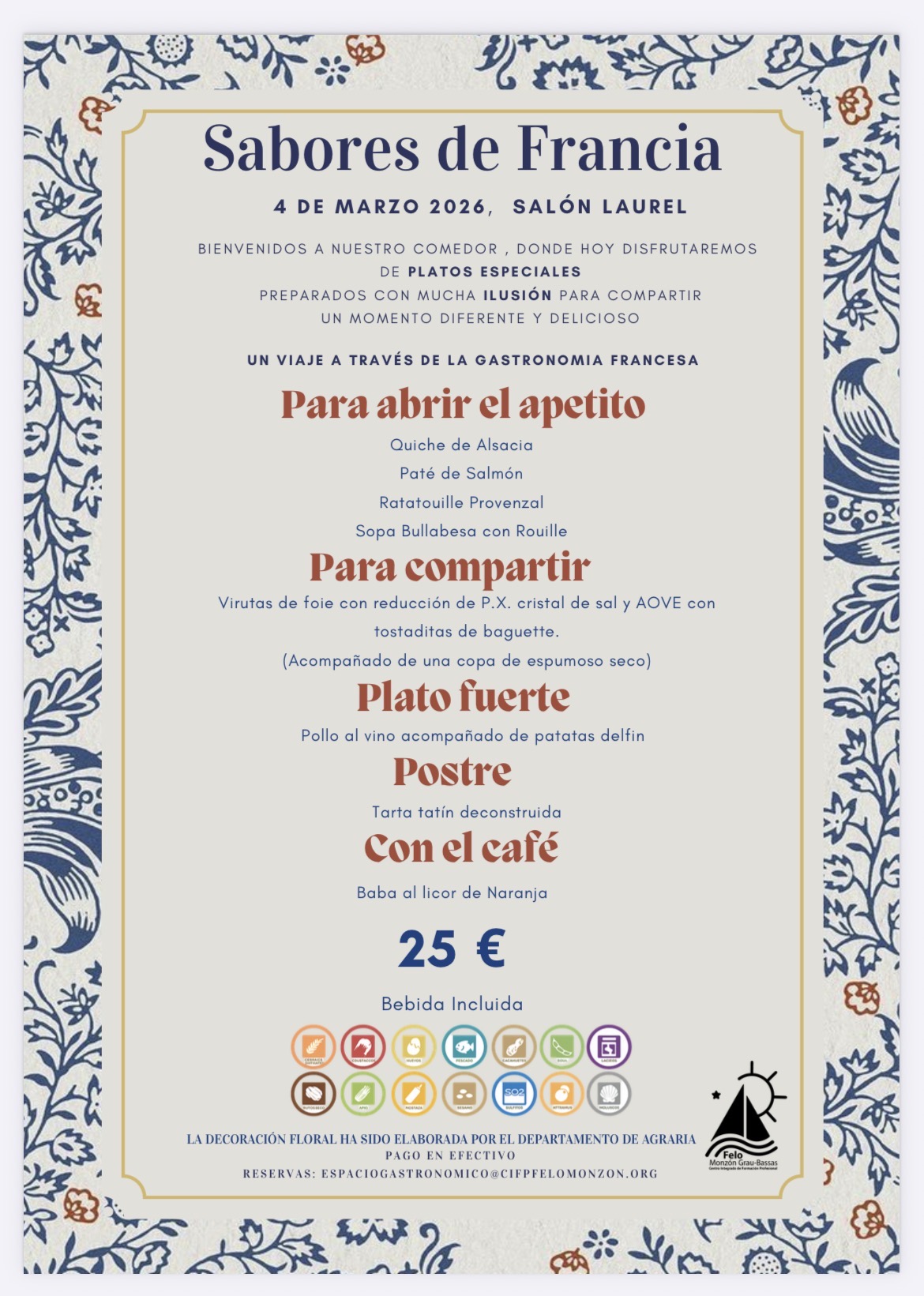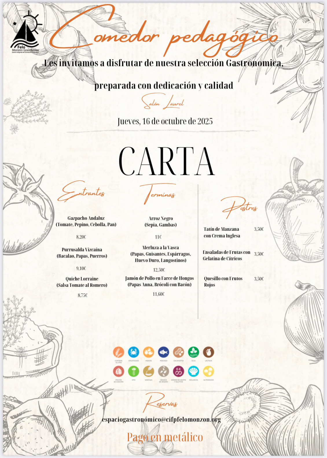 Haz tu reserva en el fomulario o envia un correo a espaciogastronomico@cifpfelomonzon.org