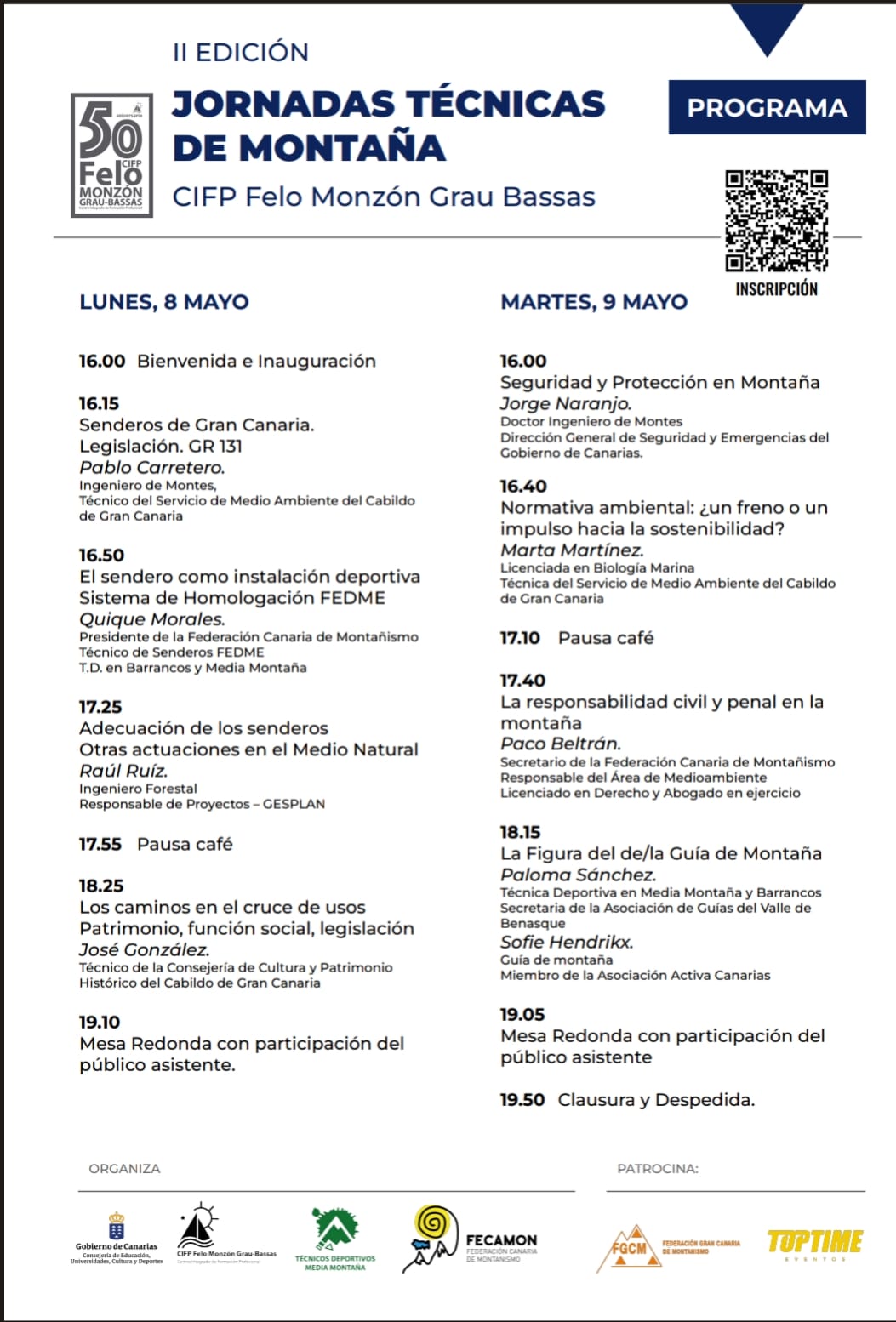 Serán los días 8 y 9 de mayo en las instalaciones del CIFP Felo Monzón Grau-Bassas, comenzando ambas jornadas a las cuatro de la tarde. Estas jornadas cuentan con el patrocinio de la Federación Insular Gran Canaria de Montañismo y la empresa de eventos deportivos Top Time Eventos.